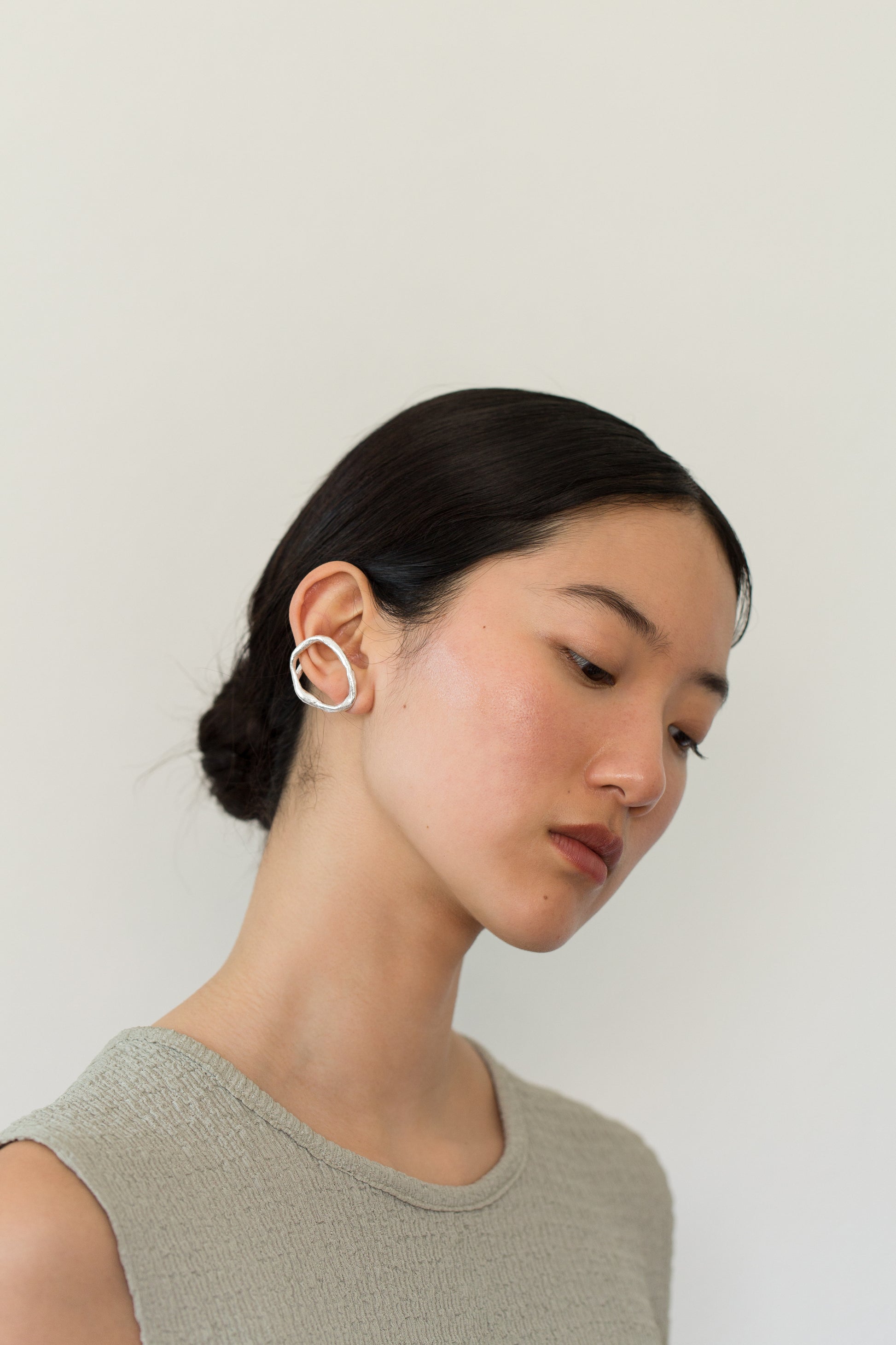 Es un aro solitario (una unidad), para usar en la oreja derecha únicamente, el cuál tiene un vástago como cualquier aro y además tiene un enganche superior tipo ear cuff.